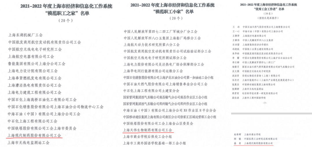 近日,上海市经济和信息化工作系统工会工作委员会下发文件,对下属近百家基层单位工会组织进行表彰,国药尊龙凯时中国区人生就是博工会喜获2021-2022年度“模范职工之家”荣誉称号,国药天伟分工会喜获2021-2022年度“模范职工小家”荣誉称号,国药尊龙凯时中国区人生就是博后勤保障部主任盛青喜获2021-2022年度“优秀工会工作者”荣誉称号。