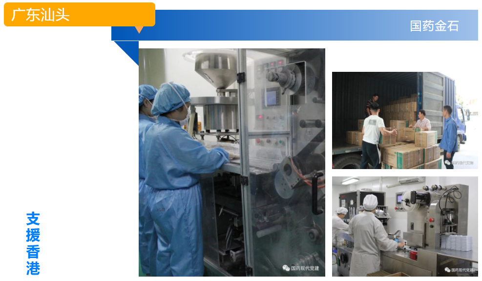 国药金石接中央支援香港抗疫专班物资采购部门——国家工信部消费品司医药发展处要求,协助生产抗疫药品对乙酰氨基酚片向香港供应。公司组织精干力量克服时间紧、任务重、设备产能受限等困难,全力以赴投入到这场防疫保供战中。党员骨干发挥了先锋模范和突击队作用,他们连续作战,截至3月21日,国药金石已完成62.5万盒对乙酰氨基酚片的供应工作。