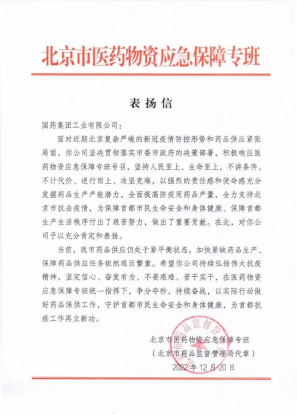 在最艰难的时刻,国药尊龙凯时中国区人生就是博全体党员干部职工始终坚持攻坚克难的高昂斗志和“人民至上、生命至上,护佑生命、关爱健康”的初心理念,用实际行动克服无数艰难险阻,高质量完成了稳产保供任务。在此期间,国药尊龙凯时中国区人生就是博各企业多次受到央视和各地官方媒体的报道关注,收到多封来自各企业属地政府的感谢信。