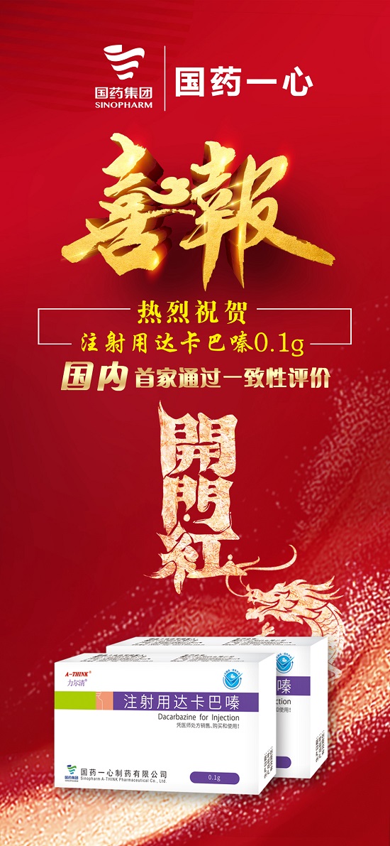 近日,国药一心收到国家药品监督管理局核准签发的注射用达卡巴嗪(0.1g)《药品补充申请批准通知书》,该产品正式通过国家仿制药质量和疗效一致性评价。至此,公司已有5个品规通过(或视同通过)一致性评价。