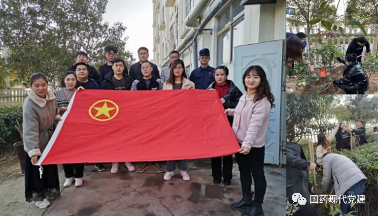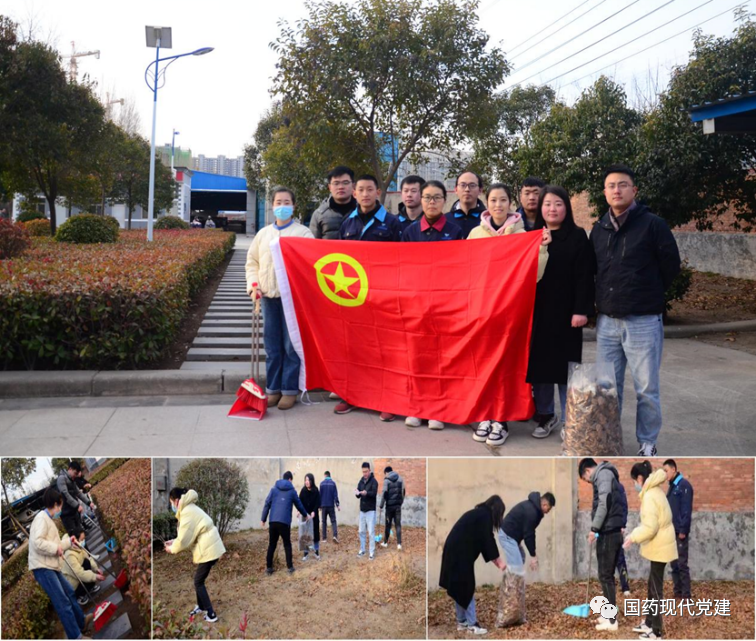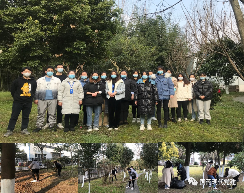 国药川抗青年党员、共青团员协同后勤人员,热火朝天开展公司树林、草坪树叶、垃圾等卫生清理活动,发扬积极耐劳的雷锋精神。
